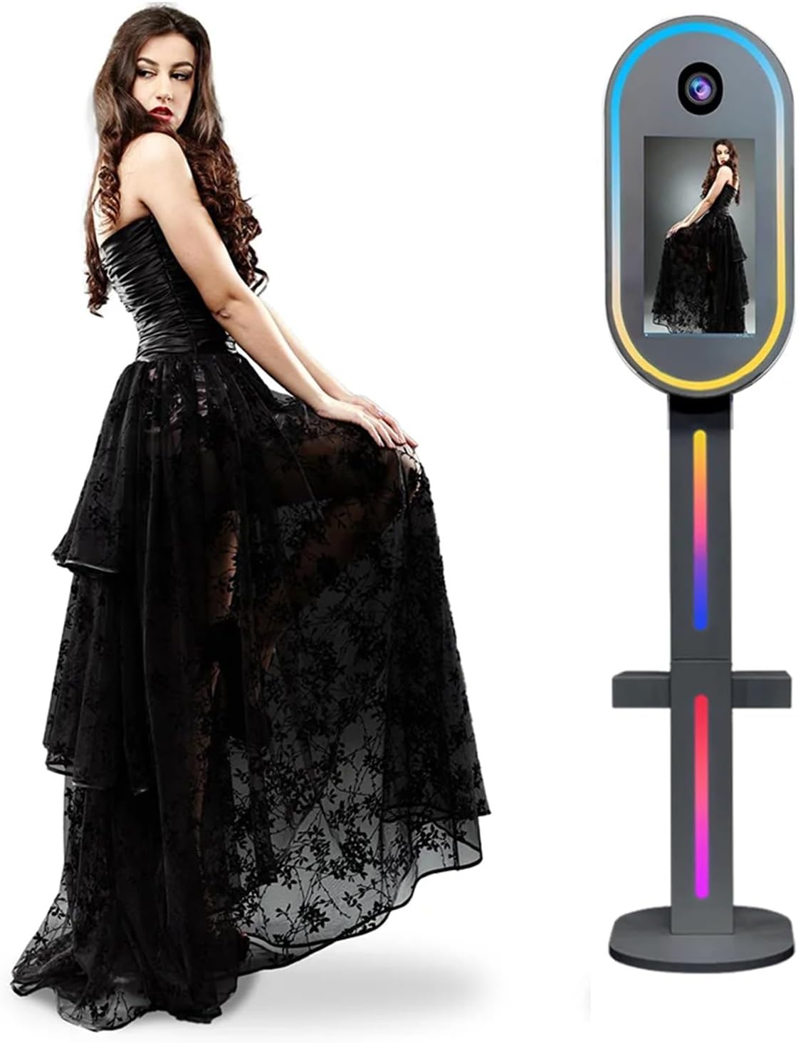 NOTE: 1. Import duties or taxes are not included in the item price, buyers are responsible for any taxes charged by your local customs. 2. Printer and camera are not included, you need to prepare them yourself. Features This DSLR Photo Booth can be configured with different languages, has a touch screen, can be connected to a camera to take photos and a printer to print photos, and has a Mini PC of i5 8GB 126GB. After-Sale One year warranty for the DSLR Photo Booth machine, please contact us if the machine has non-human quality problems or you need help, we have a professional team to help you. SETTING Built-in 15.6-inch touchscreen camera. Processor: i5 3rd generation, 8 GB RAM Win10 system flight case packaging Product size: 48*39*163cm Material: metal Package Included: 1.15.6-inch touch screen 2. Windows 10 3.intel15 8GB+128GB 4.RGB ambient light strip 5. Red carpet and props 6.Power adapter 7. Flight box