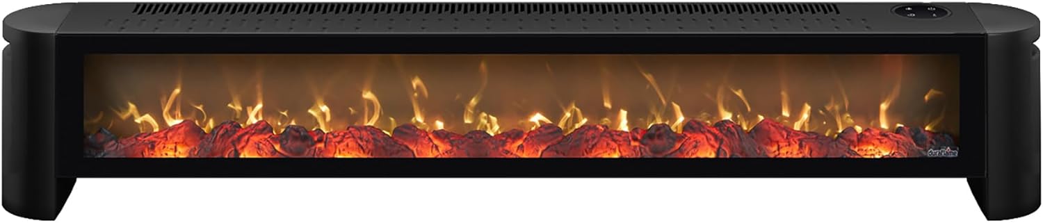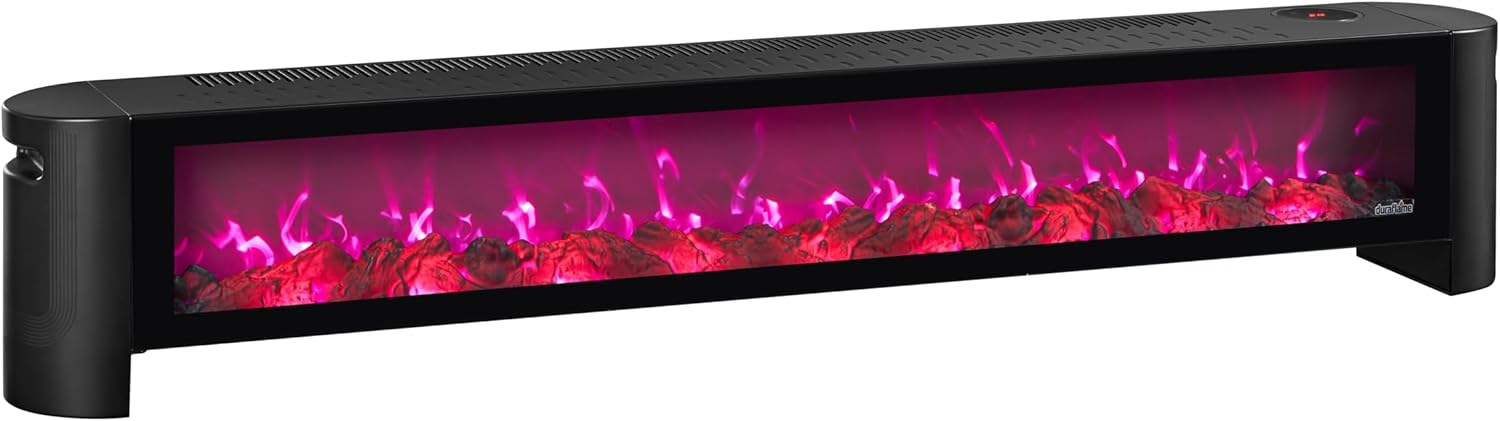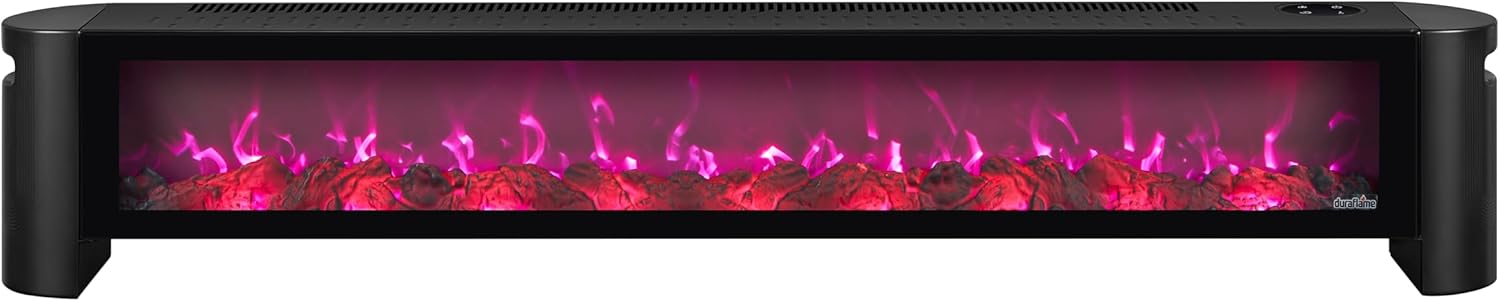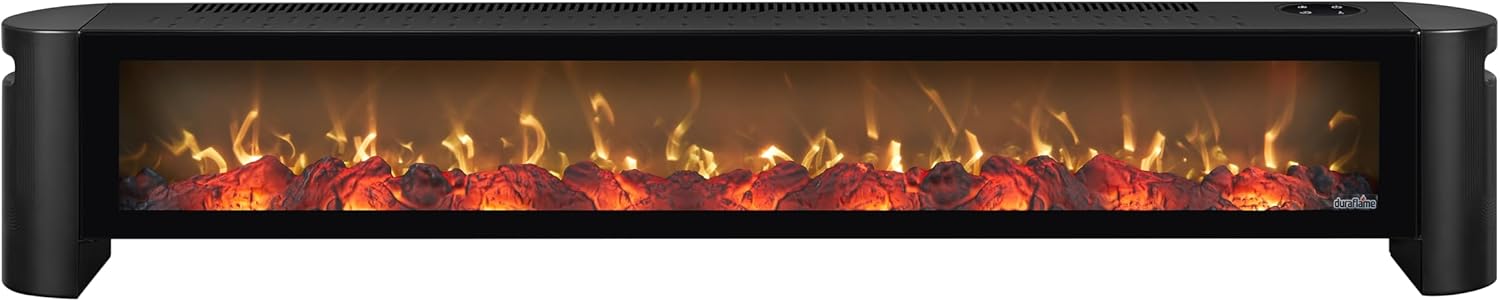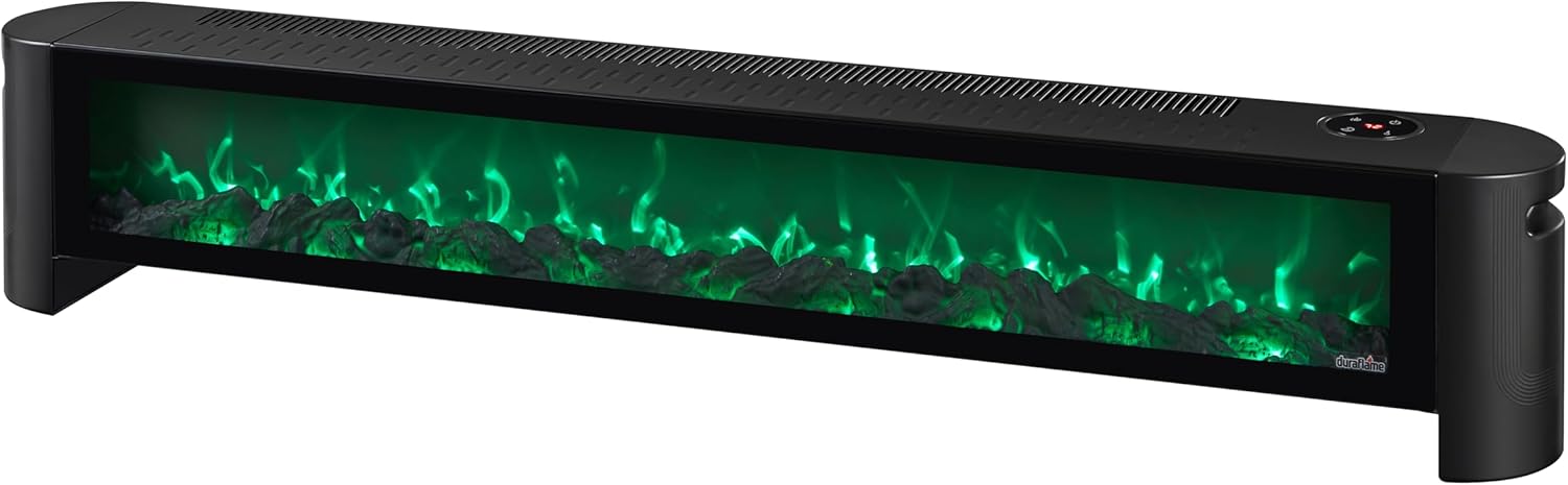 Product Description Bring cozy style into your home with this duraflame® Electric Fireplace Baseboard Heater. Whether you need to warm up your feet under your office desk or make your RV extra toasty, this electric fireplace heater can do it all. Portable and easy to carry, this little heater puts on a big show with a beautiful flame display; select multiple flame colors that suit the room, the occasion, or just your mood. The soothing flame effect can be used with or without heat for year-round ambiance. Best of all, this heater can even save you money in the long run when you use it as a supplemental heat source in the colder seasons. From the Manufacturer 1-Year Limited Warranty