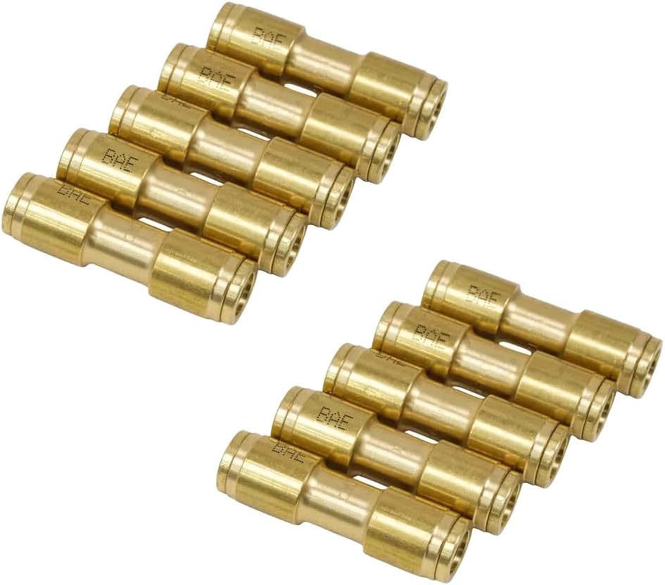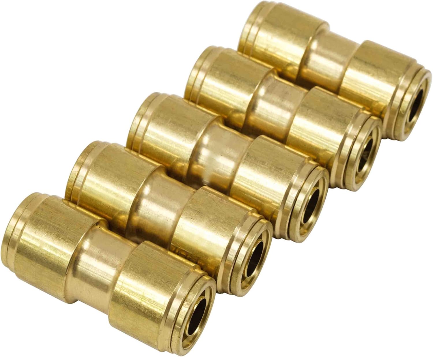 Get this DOT Union Connector Brass Push-Lock Air Brake Fitting 5/8" Tube OD from Mytee Products. These push-to-connect air fittings are useful for air brake lines as they help to quickly and securely join two tubes of the same size without any tools. The other essential details of these air brake fittings are as follows:Size & Compatibility: The air brake fitting has a 5/8" outer diameter, and it fits air line fittings of the same size on both ends. It is an inline union-type air fitting, which means it has no bends or branches.Durable Construction: This air fitting is made using brass that protects it from corrosion, vibration damage, and helps to stay strong under pressure up to 150 PSI and perform under -40° F to +200° F temperatures. The brass air fitting performs well in both hot and cold weather conditions.Application: These push-connect fittings are useful for joining two lengths of 5/8" air brake tubing while repairing or extending it in trucks, trailers, or buses with air brake systems. They can also be used for maintenance and repair purposes while replacing any section of tubing. The pair of air brake fittings is also useful in other air line systems.Push-to-Connect Feature: You can easily push the tubing into the connector until it clicks and locks into place. For disconnecting the push to connect air fittings, simply press the release collar on the fittings, and the tube slides out. These air fittings can be easily assembled and disassembled with a push-to-connect feature.Compliance: The push-to-connect air brake fittings comply with the following standards:D.O.T FMVSS 57.106: It specifies that the product meets safety standards for air brake tubing and fittings in commercial vehicles.SAE J1131: Compliance with this standard specifies that the product meets performance requirements for air brake tubing and fittings, including pressure, temperature, vibration, and hot pull testing.SAE J844: It specifies that the construction, material, type, size, and pressure rating of the product ensure proper fit and compatibility.