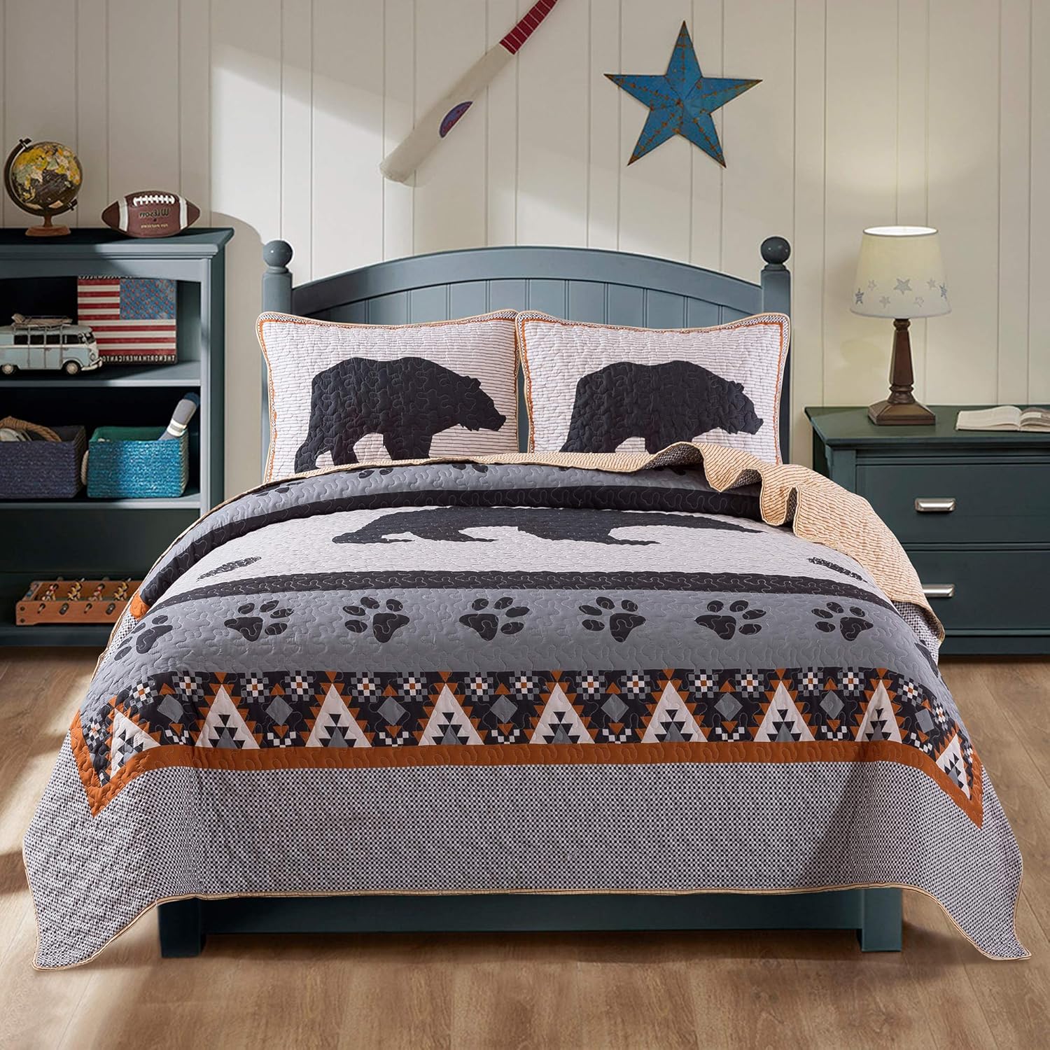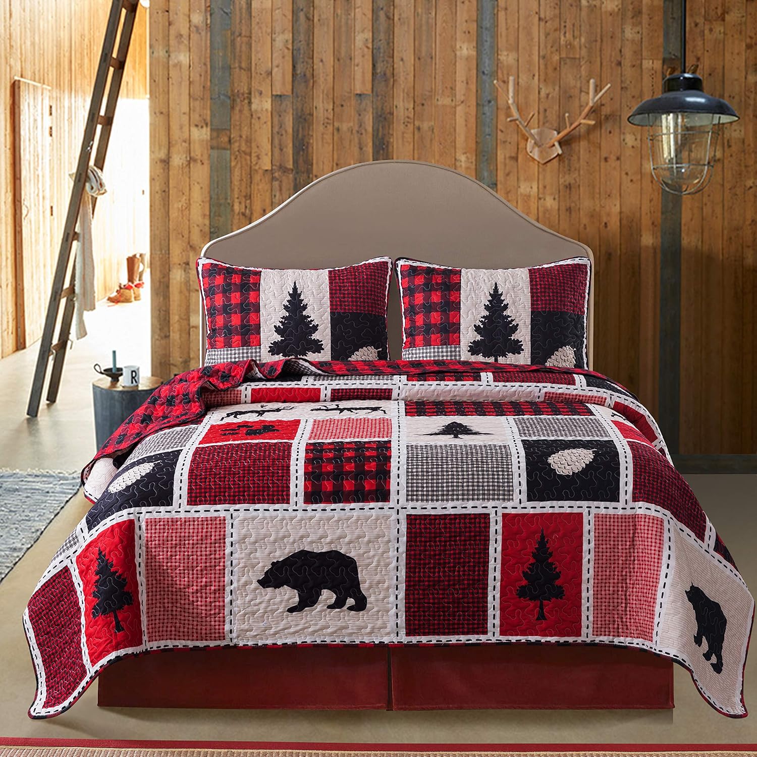 Drift into the calm of the outdoors with this Soul & Lane Fisherman’s Tale quilt set. Featuring detailed fish, pine trees, and rustic forest scenes, this fish bedspread captures the look of a peaceful retreat by the lake. Designed for lake decor bedding and cabin themed bedrooms, it brings warmth and charm to your lodge, guest room, or vacation home. Crafted from 100% polyester shell and fill, this lake house bedding delivers the perfect balance of softness and durability. The breathable, lightweight design keeps you cozy year-round, while the textured quilting enhances its handcrafted feel. Whether used as kids fishing bedding or as part of fishing themed bedding sets, it offers the ideal mix of comfort and rustic style. Both sides of this rustic bedding set coordinate beautifully, blending earthy tones with forest quilt patterns inspired by fly fishing decor and bass fish decor. Machine-washable and colorfast, it stays soft and vibrant after every wash. From cozy cabins to modern lake houses, this cabin bedspread invites the timeless tranquility of nature into your home.